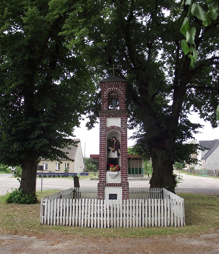 Mielęcin wieś w powiecie wałeckim w gminie Człopa. Przy wjeździe z Wołowych Lasów do Mielęcina na ulicy Dworcowej stoi murowana, przydrożna kapliczka słupowa z 1928 roku z figurą św. Jana Nepomucena.