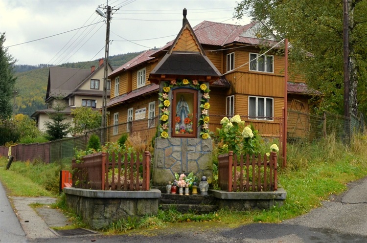 Kapliczka położona jest przy niebieskim szlaki z Zawoi na Mosorny Groń. Została ufundowana w 1957 r. przez Wincentego Makosia