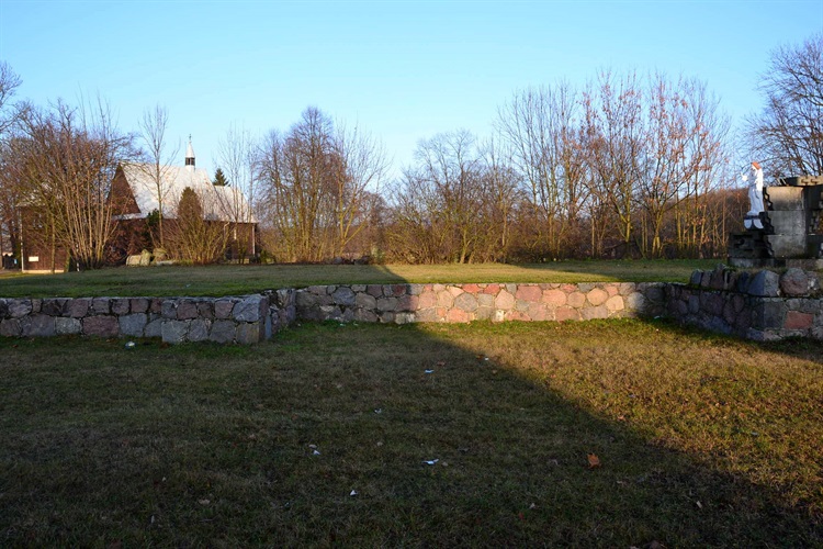 Pomimo upływu już prawie 80 lat, świątyni nie odbudowano. Pozostała po niej pamiątka w postaci kamiennego fundamentu oraz pozostałości gruzów, na których ustawiono figurę Pana Jezusa.