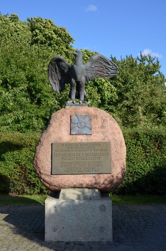 Pomnik to granitowy głaz narzutowy położony na betonowej podstawie i zwieńczony figurą orła ze zranionym prawym skrzydłem. Na głazie umieszczony został krzyż Virtuti Militari oraz tablica pamiątkowa o treści "W HOŁDZIE BOHATERSKIM OBROŃCOM GDYNI POLEGŁYM W WALKACH W 1939 ROKU / ŻOŁNIERZOM 2 MORSKIEGO PUŁKU STRZELCÓW ODZNACZONEGO ZA CZYNY BOJOWE W TYCH WALKACH KRZYŻEM ORDERU VIRTUTI MILITARI". Pomnik ten z uwagi na orła nazywany jest też pomnikiem Orła Białego.