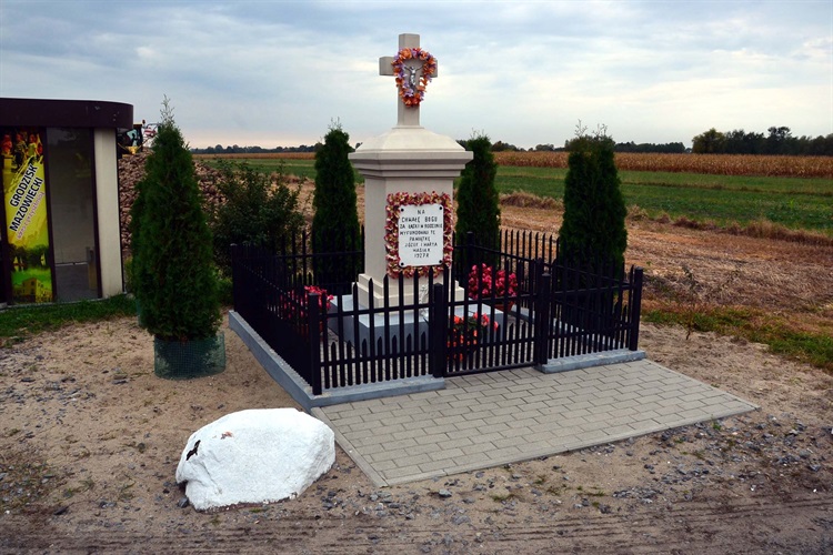 Przydrożny krzyż dziękczynny z 1927 r. znajdujący się na wjeździe do miejscowości parafialnej Izdebno Kościelne od strony Baranowa. Krzyż zadbany, starannie otynkowany i pomalowany, stąd też trudno stwierdzić z jakiego materiału został wykonany. Prawdopodobnie: postument z cegły, krzyż z kamienia. W ścianie przedniej cokołu tabliczka z informacją: „NA CHWAŁĘ BOGU ZA ŁASKI W RODZINIE WYFUNDOWALI TĘ PAMIĄTKĘ JÓZEF I MARYA WASIAK 1927 R.”.
