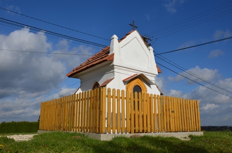 Kapliczka stoi na niewielkiej skarpie nad lokalną droga biegnącą przez wieś. Jest to obiekt wzniesiony w 1883 r., fundowany przez mieszkańca wioski Wojciecha Klisia i wzniesiony zapewne przez jego brata Jakuba Klisia.