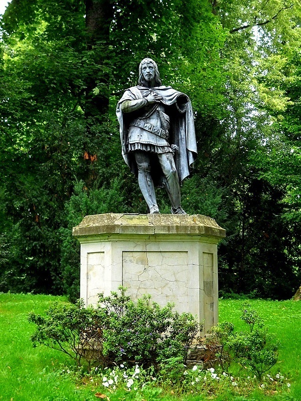 Rozległy park krajobrazowy w Łańcucie odwiedza tysiące turystów. To piękne miejsce na spacery. W pewnym miejscu stoi na wysokim postumencie figura rycerza bez lewej ręki. To wyjątkowa figura z cyny przedstawiająca patrona myśliwych, św. Huberta. To nie pomyłka.