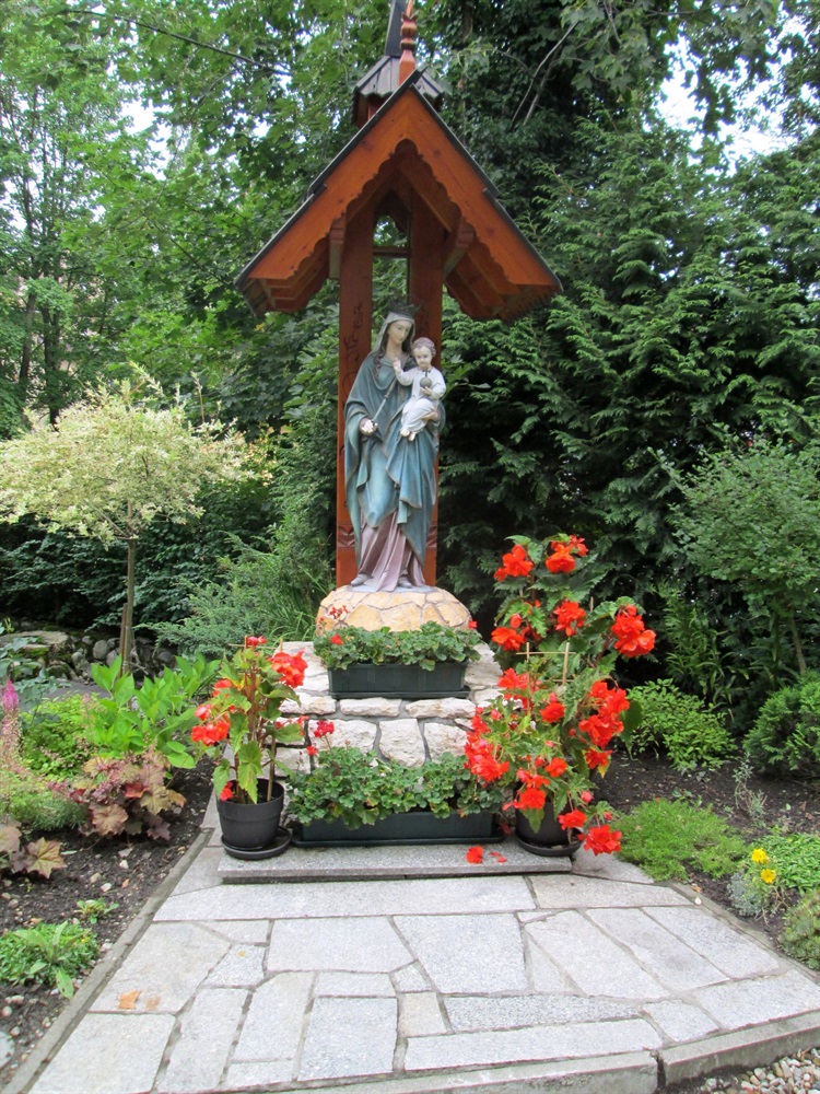 Przy kościele Salwatorianów p.w. Matki Bożej Królowej Świata znajduje się figura Matki Bożej z Dzieciątkiem. Kolorowa figura umieszczona jest na murowanym cokole z kamieni. Pokryta jest dwuspadowym drewnianym dachem nawiązującym do stylu zakopiańskiego.