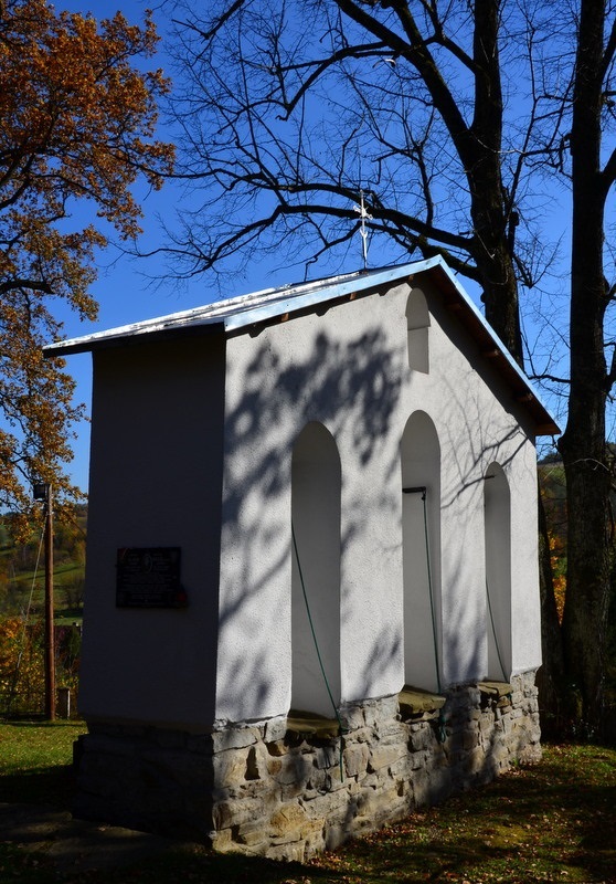 Posadowiona jest na kamiennej podmurówce, jest otynkowana, trójarkadowa z zawieszonymi dzwonami i nakryta dwuspadowym dachem krytym blachą i zwieńczonym niewielkim metalowym krzyżem.
