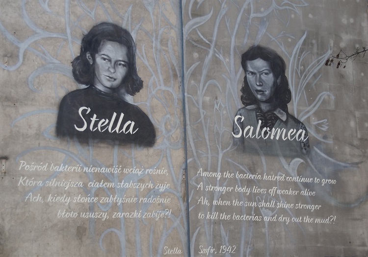 Niewielki mieszkalny budynek stojący przy ul. Franciszkańskiej 26 znajdował się w okresie II wojny światowej w granicach zamkniętej dzielnicy Litzmannstadt Getto. W 2017 roku, 75 lat po Wielkiej Szperze, na jego bocznej ścianie powstał mural upamiętniający dwie postacie: Salomeę Kape oraz Stellę Szafir. Były to dwie przyjaciółki, których losy potoczyły się w różnych kierunkach… Salomea getto przeżyła, Stella straciła życie w obozie w Chełmnie. Malowidło powstało za sprawą Centrum Dialogu im. Marka Edelmana w Łodzi. Wszystkich zainteresowanych opowieścią Salomei Kape o łódzkim getcie zachęcam do przeczytania artykułu „… zaczęłam się uczyć niemieckiego, żeby przezwyciężyć nienawiść”.
