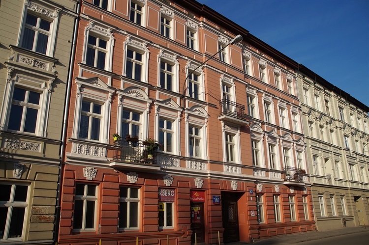 Stojąca przy ul. Wólczańskiej 167 trzypiętrowa, bogato zdobiona kamienica była pierwotnie własnością Edwarda Blau i jego żony Joanny. Nieruchomość swą Blau zaczął zabudowywać w roku 1890 wznosząc parterowy dom i dwupiętrową oficynę mieszkalną według projektów architekta Ignacego Markiewicza.