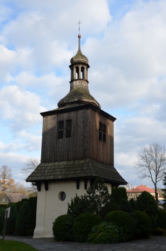 Wolno stojąca zabytkowa dzwonnica wzniesiona w XVII wieku stoi obok kościoła św. Józefa. Obiekt zbudowany na planie kwadratu, dwukondygnacyjny i nakryty czterospadowym dachem z nałożonym na niego baniastym, gontowym hełmem zwieńczonym ośmioboczną latarnią z krzyżem i chorągiewką wiatrową na jej szczycie. Pierwsza kondygnacja jest murowana, a druga drewniana.