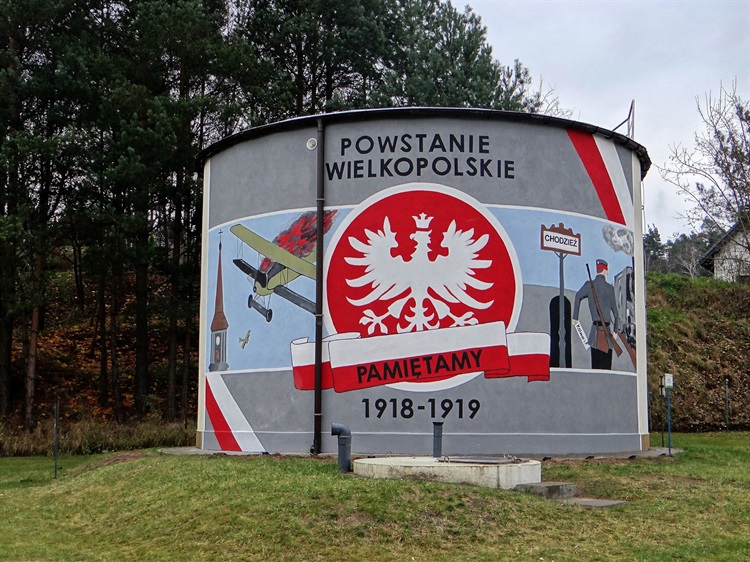 Od 14 do 22 października pod wodzą Marty Szymańskiej, grupa 17 uczniów w wieku 13 – 17 lat stworzyła mural odwołujący się do wydarzeń w latach 1918 -1919. Jeden obraz przedstawia zestrzelenie przez powstańców niemieckiego samolotu, drugi obraz nawiązuje do zdobycia dworca kolejowego podczas bitwy o Chodzież, która rozegrała się 8 stycznia 1919 roku. Pomiędzy tymi obrazami jest biały orzeł na czerwonym tle oraz napisy „Powstanie Wielkopolskie”, „Pamiętamy” i daty 1918 – 1919.