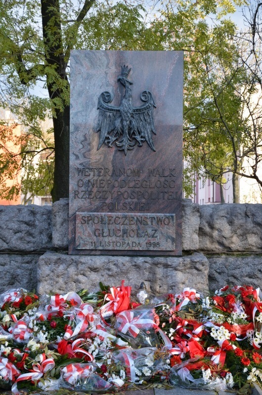 Pomnik znajduje się na skwerze przy ul. Aleja Jana Pawła II. Jest to trzystopniowy kamienny mur z umieszczoną na jego środku tablicą pamiątkową o treści "WETERANOM WALK O NIEPODLEGŁOŚĆ RZECZPOSPOLITEJ POLSKIEJ". Nad napisem umieszczona jest płaskorzeźba orła w koronie. Tablicę wmurowano 11.11.1998 r.