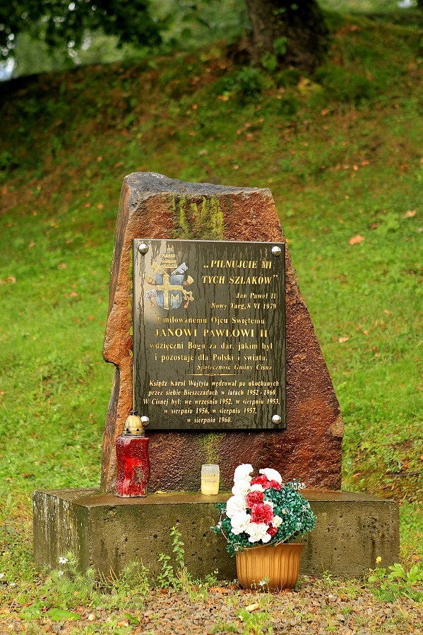 Głaz z tablicą pamiątkową poświęconą Janowi Pawłowi II stoi na wzgórzu Betlejemka w Cisnej. Na tablicy widnieje napis: "Pilnujcie mi tych szlaków - Jan Paweł II. Nowy Targ, 8 VI 1979. Umiłowanemu Ojcu Świętemu Janowi Pawłowi II, wdzięczni Bogu za dar jakim był i pozostaje dla Polski i świata" oraz "Ksiądz Karol Wojtyła wędrował po ukochanych przez siebie Bieszczadach w latach 1952-1960. W Cisnej był: we wrześniu 1952, w sierpniu 1953, w sierpniu 1956, w sierpniu 1957, w sierpniu 1960." Tablicę ufundowała Społeczność Gminy Cisna.