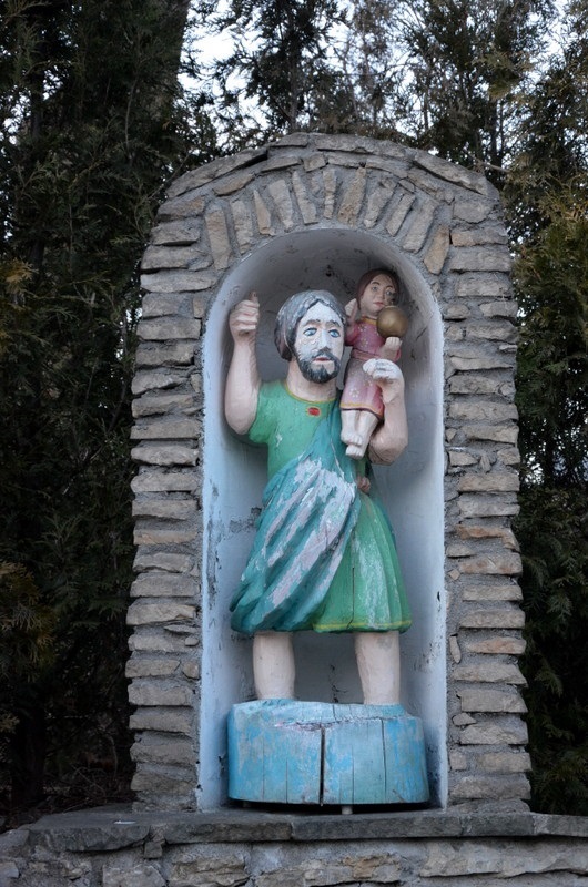 Kapliczka znajduje się przy ul. Centralnej. Podstawę kapliczki stanowi półokrągły murek wzniesiony z kamienia łamanego. Posadowiona na nim kapliczka jest również zbudowana z kamienia łamanego. Wewnątrz otwartej wnęki zamkniętej łukiem umieszczona jest ludowa rzeźba świętego Krzysztofa z dzieckiem na lewym ramieniu.