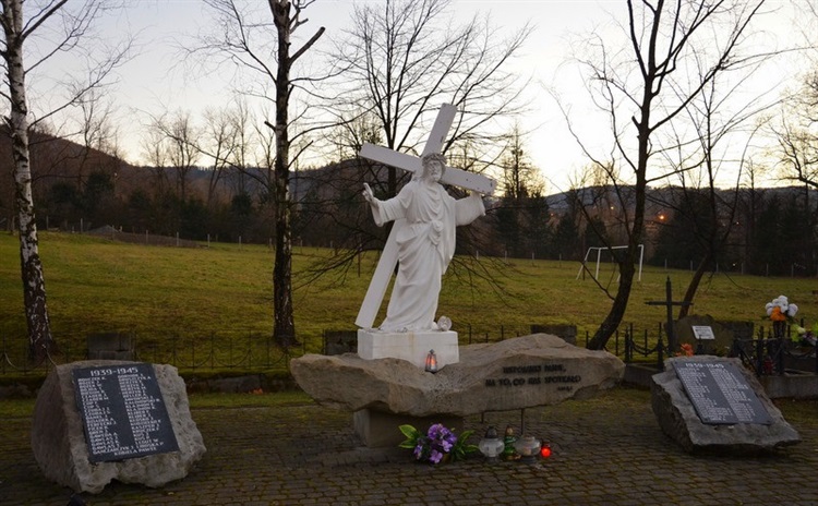 Pomnik upamiętniający mieszkańców miejscowości poległych na frontach II wojny światowej znajduje się na skraju cmentarza komunalnego. Centralne miejsce zajmuje postać Pana Jezusa dźwigającego krzyż. Figura stoi na podłużnym odłamie skalnym,na którym widnieje inskrypcja "WSPOMNIJ PANIE NA TO CO NAS SPOTKAŁO". Dwa bloki skalne z przytwierdzonymi płytami ustawione po bokach zawierają datę – 1939 – 1945 i nazwiska poległych.