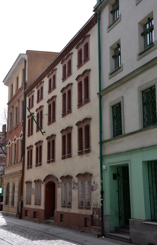 Spichlerz jest obiektem murowanym, czterokondygnacyjnym z bramą pośrodku. Został zbudowany w 1880 r. jako magazyn zbożowy dla działających nad brzegami Młynówki młynami. Jednym był młyn miejski zlokalizowany nieopodal spichlerza, a drugim młyn książęcy (zamkowy) znajdujący się na drugim brzegu Młynówki. Spichlerz stojący przy ul. Szpitalnej 9 wpisany jest na listę zabytków z numerem 2156/87 z 5.03.1987