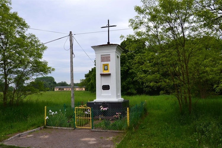W każdej ze ścian prostokątne płyciny. W elewacji frontowej u góry wyryty wpis: KTÓRYŚ CIERPIAŁ ZA NAS RANY JEZU CHRYSTE ZMIŁUJ SIĘ NAD NAMI. Poniżej obrazek przedstawiający Miłosierne Serce Jezusa. Pod nim oryginalna tabliczka z czasu wystawienia: ROK 1862.