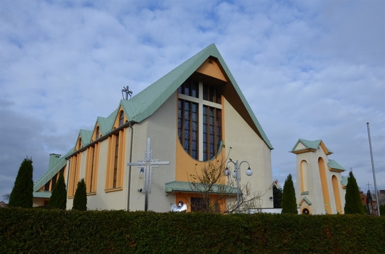 Przed budową świątyni kupiono od ojców Oblatów z Lublińca drewniany barak, w którym odbywała się katecheza dzieci oraz msze święte. W następnym roku tj. w lipcu 1986 przystąpiono do budowy kościoła.