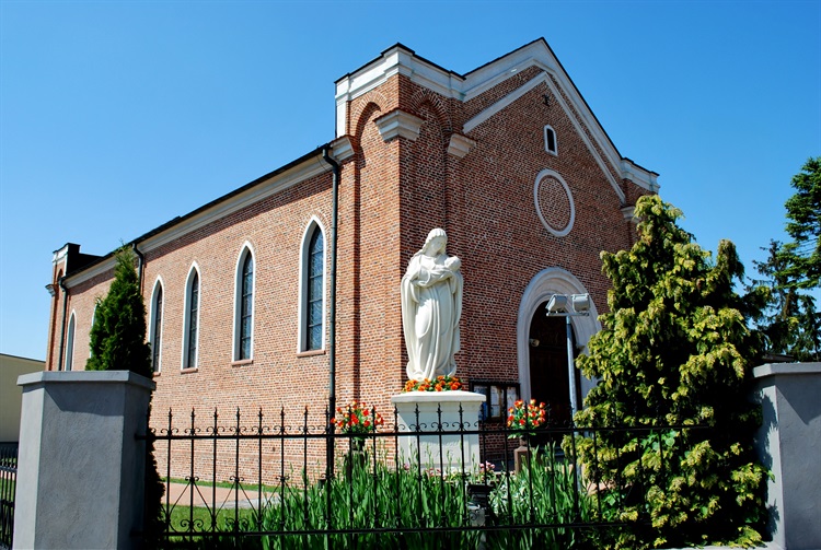 Zwiedzając Sompolno warto zobaczyć kościół parafialny p.w. św. Marii Magdaleny. W jego sąsiedztwie, u zbiegu ulic Kościelnej i 11 Listopada stoi figura Matki Boskiej z Dzieciątkiem. Rzeźbę ufundowała mieszkanka miasta Helena Strzelecka w maju 1945 r. jako wotum za szczęśliwy powrót jej syna Władysława z obozu koncentracyjnego Mauthausen.