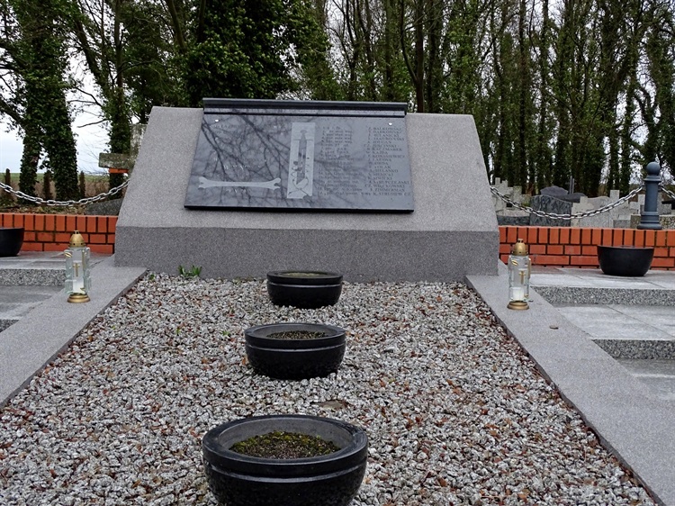 W 1945 r. na zbiorowej mogile stał prosty, drewniany krzyż umieszczony tam przez wdowę po poruczniku marynarki wojennej Janie Strupczewskim. To ona własnoręcznie wyryła napis „ŚP.OFICEROWIE POLSCY 30.I.1945”. Dzisiaj krzyż można oglądać w Muzeum Wojskowości, Szkolnictwa i Wsi . Obecnie mogiła stanowi wydzieloną i oznakowaną dwoma mieczami grunwaldzkimi kwaterę w obrębie ogrodzenia wiejskiej nekropolii.