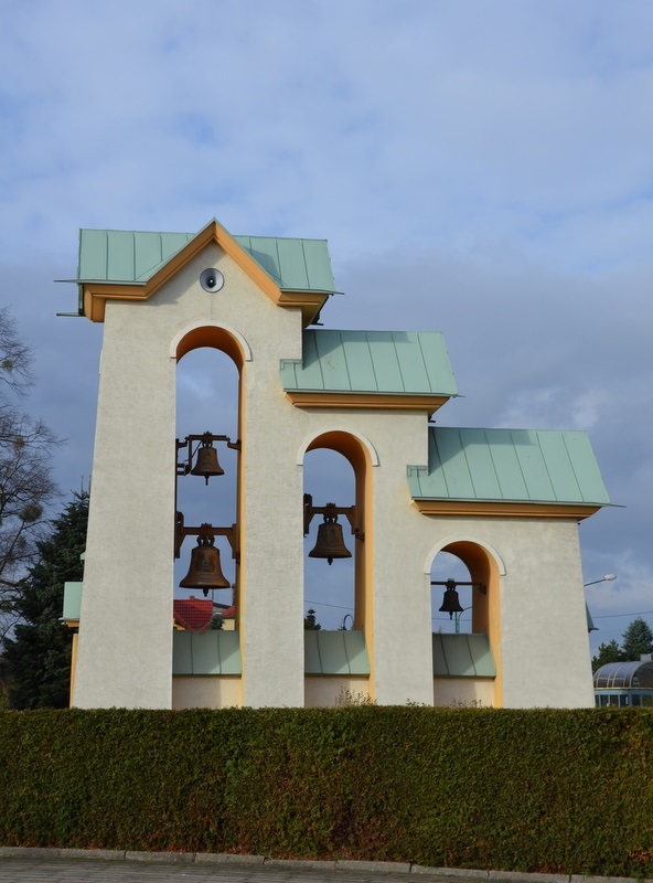 Stojąca wolno murowana dzwonnica stoi obok kościoła pw. św. Teresy Benedykty od Krzyża. Jest to obiekt wzniesiony na planie wydłużonego prostokąta, trzystopniowy z trzema otworami zamkniętymi łukiem w każdym stopniu. Najwyższa część dzwonnicy nakryta jest łamanym dachem, a dwie niższe części dachami dwuspadowymi.