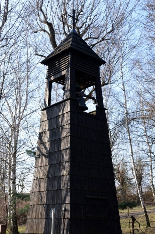 Stojąca wolno dzwonnica znajduje się obok drewnianego kościoła pw. Świętego Krzyża. Dzwonnica zbudowana na planie kwadratu jest drewniana, kryta gontem, zwężająca się ku górze i nakryta czterospadowym dachem zwieńczonym drewnianym krzyżem. Na jej szczycie zawieszone są dwa dzwony. Jeden o wadze 400 kg poświęcony jest papieżowi Janowi XXIII, a drugi mniejszy o wadze 200 kg nosi imię Matki Boskiej Częstochowskiej. Dzwonnicę zbudowali w 1971 r górale z Chyżnego.