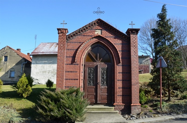 Kapliczka usytuowana jest w centrum wsi. Jet to obiekt zbudowany na planie prostokąta, murowany z cegły i nakryty dwuspadowym dachem krytym blachą. W narożach elewacji lizeny zwieńczone krzyżami i większym krzyżem w szczycie, ponadto elewacje frontowa i boczne zwieńczone kroksztynami. Otwory okienne i drzwiowy zwieńczone ostrym łukiem, a nad nimi ostrołukowe gzymsy. Wnętrze zabezpieczone drewnianymi przeszklonymi drzwiami. Wewnątrz drewniany ołtarz z dużym obrazem w centrum. Kapliczka została zbudowana prawdopodobnie w XIX lub na początku XX wieku.
