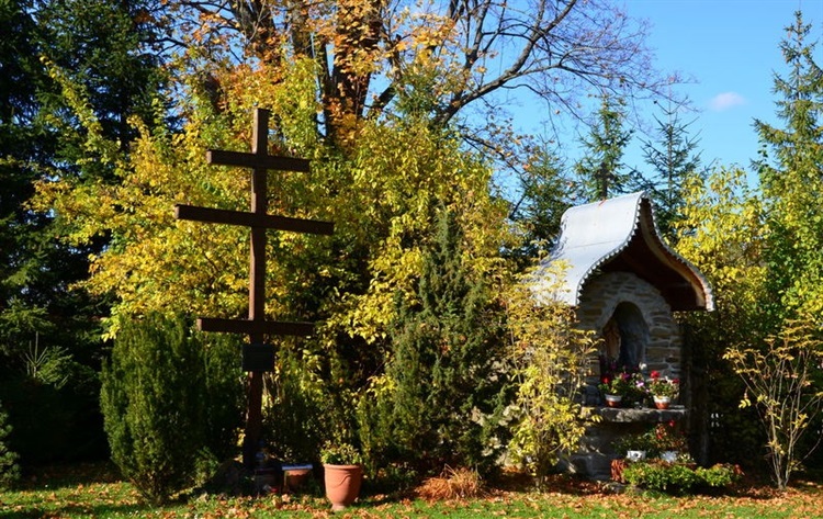 Krzyż i kapliczka stoją na terenie Franciszkańskiego Domu Zakonnego. Stoi tutaj drewniany kościół pw. Miłosierdzia Bożego i nowy kościół murowany przylegający do domu zakonnego. Drewniany krzyż został postawiony 15 sierpnia 2005 i upamiętnia deportowanych w 1947 r. ostatnich mieszkańców Wetliny.