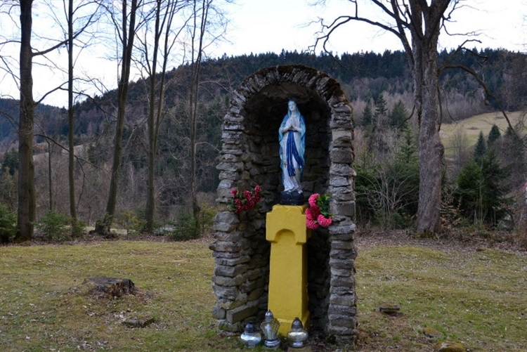 Kapliczka wykonana jest z kamienia łamanego w formie groty. Wewnątrz na postumencie stoi figura Matki Bożej Różańcowej. Niedaleko kapliczki znajduje się grób księdza Henryka Ostacha, który przed śmiercią w 2011 r. wyraził życzenie, aby pochowano go na tutejszym cmentarzu.