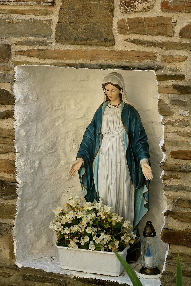 W ogrodzeniu kościoła pod wezwaniem Świętych Apostołów Piotra i Pawła w Nowym Żmigrodzie znajdują się figury świętych. Rzeźby zostały ustawione we wnękach kamiennego muru. W środkowej niszy stoi figura Matki Bożej, obok figury Apostołów św. Piotra i św. Pawła - patronów świątyni.