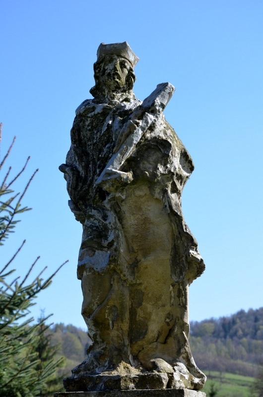Barokowa rzeźba św. Jana Nepomucena stoi na placu przed kościołem Wniebowzięcia NMP. Figura datowana na II połowę XVIII wieku wieńczy prosty cokół posadowiony na trzystopniowej podstawie. W prostokątnej płycinie cokołu słabo czytelna inskrypcja w języku niemieckim. Wykonana z piaskowca figura świętego trzymającego na lewym ramieniu uszkodzony krzyż jest w fatalnym stanie. Figura pozbawiona prawej ręki praktycznie jest w stanie rozkładu.