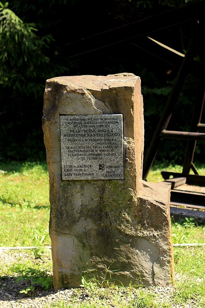 Pomnik z tablicą upamiętniającą szkołę wiertniczą w Ropiance został odsłonięty 17 maja 2003 roku. Na granitowej tablicy widnieje napis: "W roku 1885 we wsi Ropianka założona została staraniem Władysława Fibicha Praktyczna Szkoła Wiercenia Kanadyjskiego - pierwsza w Europie szkoła wiertnicza. Dla uczczenia tego faktu w przypadającym w 2003 Roku Łukasiewiczowskim tablicę tę fundują: PTTK w Krośnie, UMiG Dukla, Lasy Państwowe." Obok pomnika z piaskowca stoi pompa służąca do wydobywania ropy naftowej tzw. kiwon i tablica z historią kopalni ropy naftowej w Ropiance.