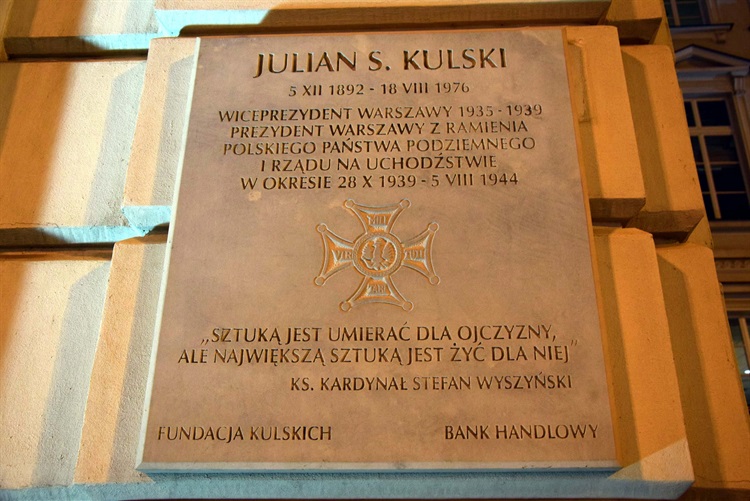 Tablica znajdująca się przy ulicy Senatorskiej 16 na ścianie frontowej danego pałacu Jabłonowskich (ratusza miasta stołecznego Warszawy), obecnie siedziby instytucji bankowych. Zawieszona z inicjatywy Fundacji Kulskich przy wsparciu finansowym Banku Handlowego. Upamiętnia Juliana S. Kulskiego, wiceprezydenta Warszawy w latach 1935-39.