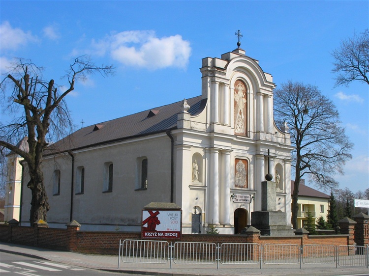 Drewniany kościół zbudowany i uposażony w roku 1757 przez właściciela dóbr Konstantego Ołtarzewskiego, decyzją bpa Andrzeja Załuskiego podniesiony został do rangi siedziby parafii. W trzydzieści lat później kościół spłonął.