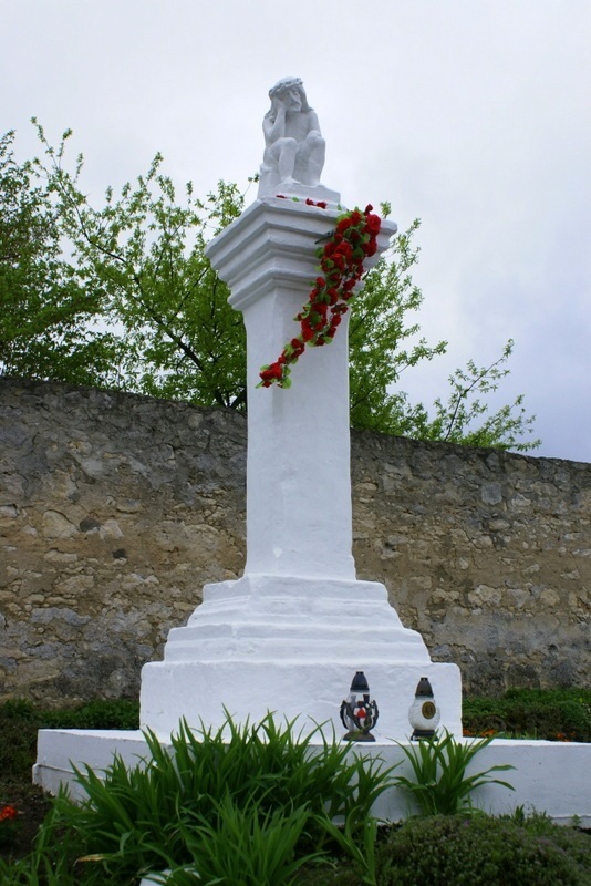 Rzeźba Chrystusa Frasobliwego stoi po zewnętrznej stronie muru otaczającego teren klasztoru o.o. sercanów (do 1979 r. o.o. reformatów). Figura wieńczy rozbudowaną głowicę wysokiego kamiennego słupa posadowionego na kilkustopniowej podstawie. Chrystus Frasobliwy przedstawiony jest w pozycji siedzącej z przechyloną głową i nałożoną na nią koroną cierniową. Głowę opiera na prawej dłoni.