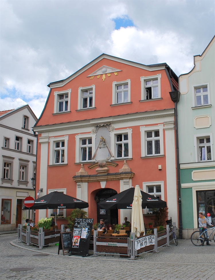 Piętrowy budynek z mieszkalnym poddaszem stoi frontem do placu i posiada zdobioną fasadę. W jej szczycie widnieje "Oko Opatrzności", a pomiędzy oknami piętra, nad portalem wejściowym polichromowana płaskorzeźba przedstawiająca Matkę Boską z Dzieciątkiem. Poza mieszkaniem w domu mieściła się także pracownia rzeźbiarska.