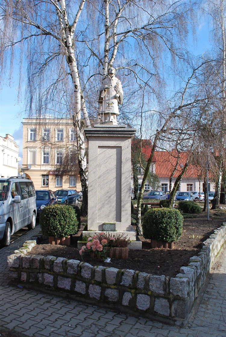 Święty Wawrzyniec jest patronem Pniew, parafii i najstarszej świątyni fundowanej w początkach XV wieku. Święty posiada w mieście swoją ulicę, przy której znajduje się niewielki plac. Placyk zrewitalizowany w ostatnich latach zdobi pomnik patrona miasta. Rzeźbę z charakterystyczną kratą i palmowym liściem ustawiono na murowanym cokole.
