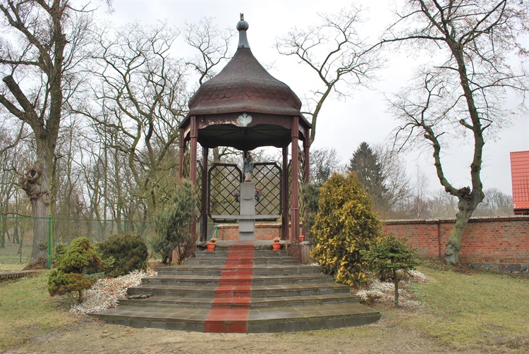 Matce Boskiej poświęcona jest niezliczona ilość kapliczek reprezentujących wszystkie ich formy. Jedną z najpopularniejszych stały się groty Maryjne stawiane najczęściej przy kościołach. Także przy kościele p.w. św. Andrzeja i Najświętszej Marii Panny Wspomożycielki w Lutomiu znajduje się kapliczka Bożej Rodzicielki z Jezusem na ręku. Ma ona jednak niepowtarzalną formę. Na usypanym wzniesieniu ustawiono postument z figurą, który obudowano drewnianą altaną nakrytą cebulastym hełmem. Prowadzą do niej kilkustopniowe schody. Kapliczka pełni także funkcję plenerowego ołtarza.