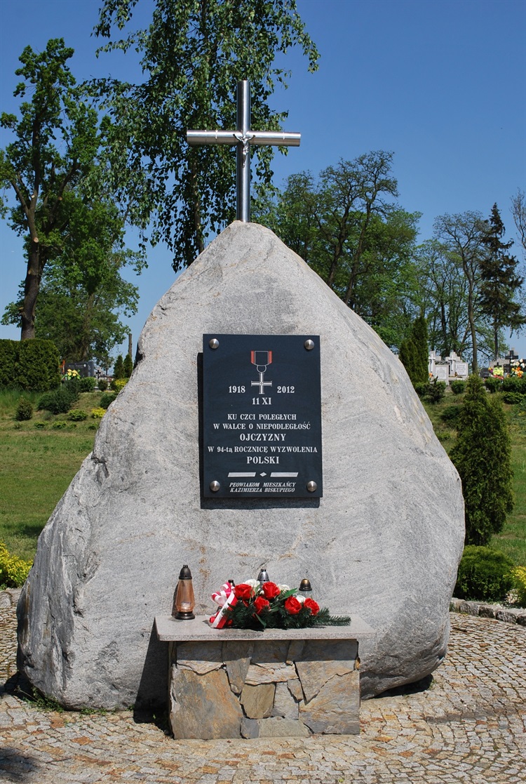 Na terenie cmentarza parafialnego w Kazimierzu Biskupim w 2012 roku odsłonięto pomnik poświęcony żołnierzom Polskiej Organizacji Wojskowej poległym w walkach o niepodległość Polski. Bazę pomnika stanowi potężny głaz narzutowy zwieńczony metalowym krzyżem. Pod nim zamocowano tablicę z napisem "Ku czci poległych w walce o niepodległość Ojczyzny w 94 rocznicę wyzwolenia Polski. Peowiakom mieszkańcy Kazimierza Biskupiego".