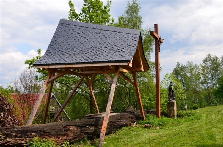Największym obiektem jest zadaszony ołtarz polowy. Zasadniczym jego elementem jest tysiącletni pień czarnego dębu wyciągnięty z Dunajca. Obok stoi wysoki, prosty drewniany krzyż z małą figurką Ukrzyżowanego Chrystusa. Rzeźbę Chrystusa wykonał artysta rzeźbiarz, prof. Józef Kopczyński. Figura Matki Bożej Królowej Polski wieńcząca prostą, murowaną z kamienia podstawę, znajduje się po prawej stronie krzyża. Matka Boża w szatach koronacyjnych królowej Jadwigi trzyma na prawej ręce dzieciątko Jezus. Rzeźbę MB wykonała rzeźbiarka Zofia Trzcińska-Kamińska.