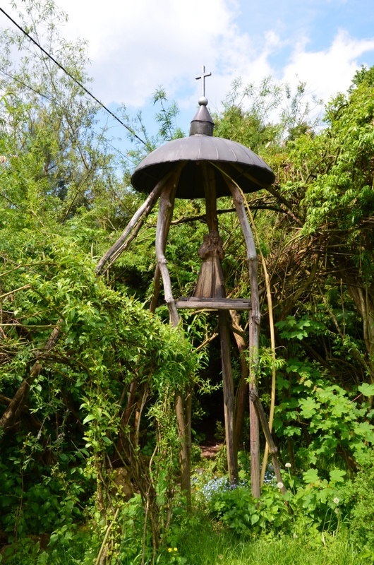 Druga kapliczka z drewnianą figurą Matki Bożej wykonana jest w formie groty.