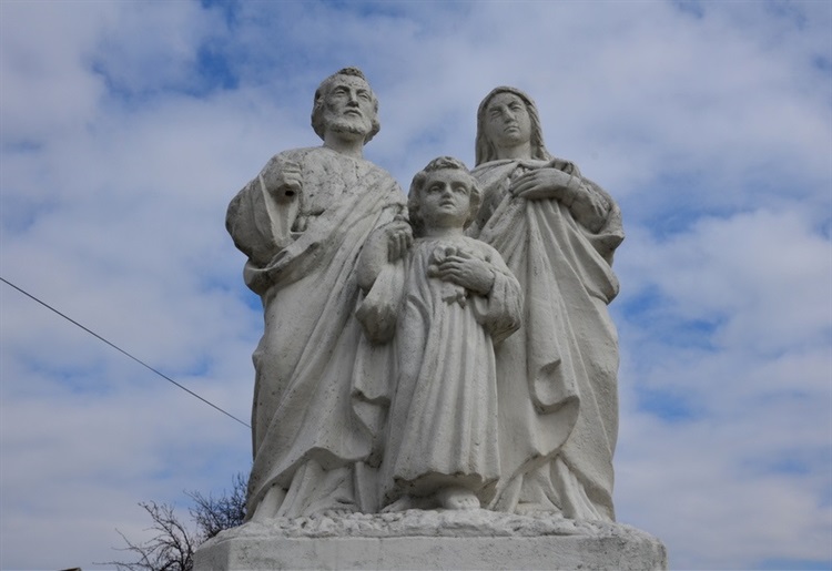 Pomnik Świętej Rodziny stoi po prawej stronie drogi krajowej nr 28 prowadzącej z Sanoka do Krosna. Postument postawiony jest na betonowym podwyższeniu. Dwustopniowa podstawa cokołu zakończona jest gzymsem stanowiącym podstawę cokołu. Cokół zakończony jest również rozbudowanym gzymsem, na którym umieszczona jest kompozycja rzeźbiarska przedstawiająca Świętą Rodzinę. W prostokątnej płycinie na frontowej ścianie cokołu wyryty jest napis fundacyjny "NA CZEŚĆ PRZENAJŚWIĘTSZEJ RODZINY L i A MALINOWSCY – 1925 r."