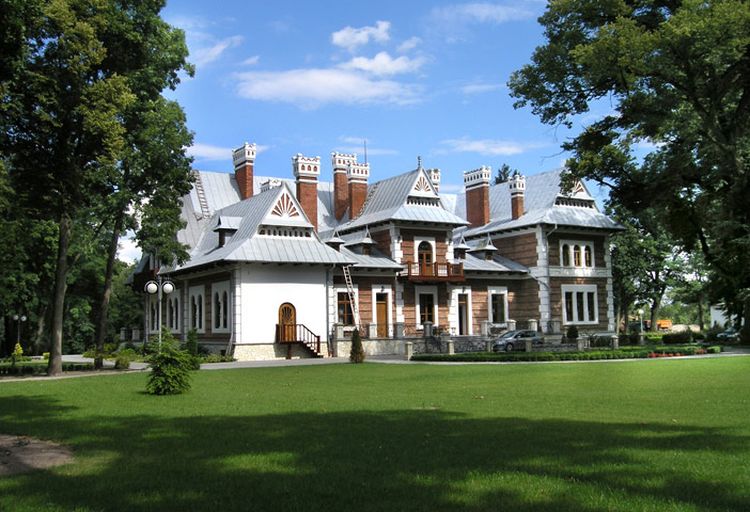 Murowany dwór w stylu zakopiańskim wg projektu S. Witkiewicza (1903-1904).