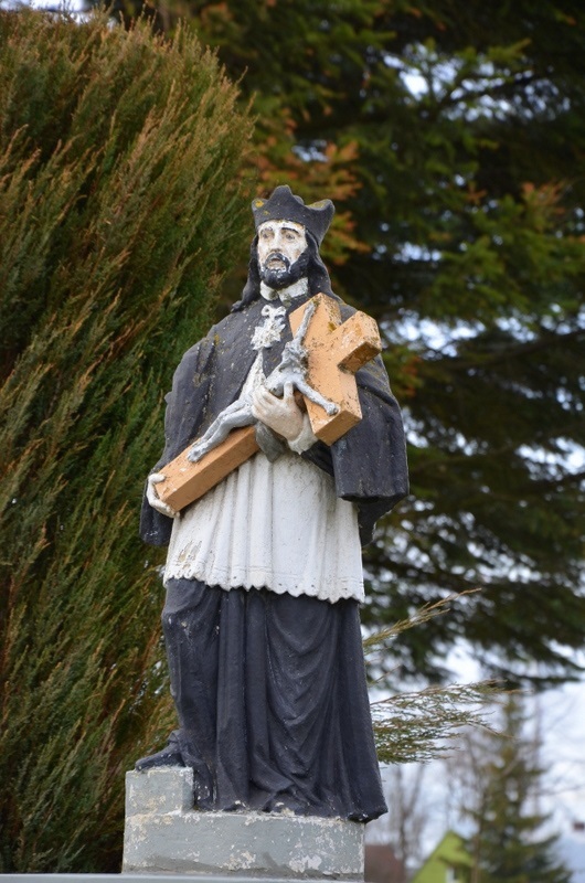 Kamienna polichromowana rzeźba św. Jana Nepomucena stoi na skraju ul. Rzeszowskiej nieopodal posesji nr 55. Figura wieńczy prosty cokół z podłużną płyciną postawiony na dwustopniowym podwyższeniu. Św. Jan w stroju kapłańskim trzyma przy piersi dużych rozmiarów krzyż z figurką ukrzyżowanego Chrystusa. Stoi na podstawie ze stopniem, na którym spoczywa jego prawa stopa, co daje efekt kontrapostu.