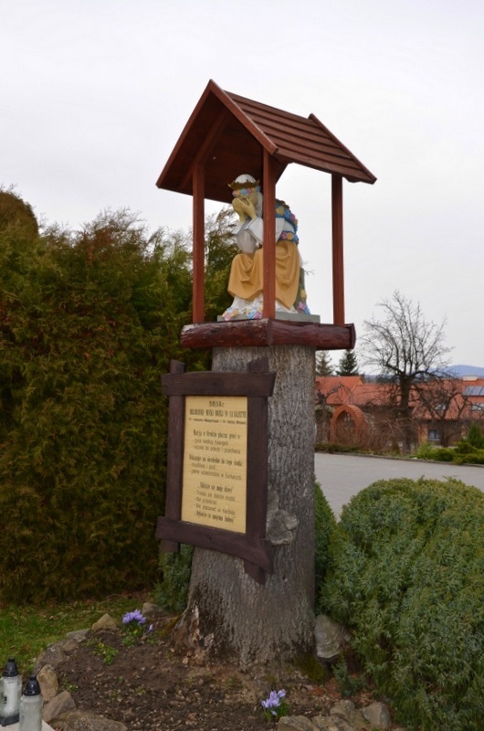 Kapliczka została wzniesiona w 2007 roku. Podstawą kapliczki jest pień ściętego drzewa. Na nim znajduje się figura Matki Bożej Saletyńskiej. MB płacząca przedstawiona jest w pozycji siedzącej z rękami przy twarzy. Figurę zabezpiecza dwuspadowy drewniany daszek wsparty na czterech drewnianych podporach. Na tablicy przybitej do pnia umieszczona jest informacja o ukazaniu się 19.09.1816 r. Matki Bożej w La Salette dzieciom: 11 - letniemu Maksymilianowi i 14 - letniej Melanii. Matka Boża płacząc przekazała im orędzie "Zbliżcie się moje dzieci: Trzeba się dobrze modlić – Nie przeklinać – Nie pracować w niedzielę – Ogłoście to mojemu ludowi".