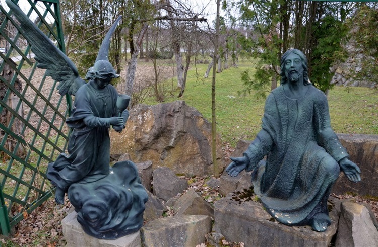 Kompozycja rzeźbiarska przedstawiająca modlitwę Chrystusa w Ogrodzie Oliwnym (Ogrójcu) powstała w 2007 roku. Kompozycja znajduje się na skraju ogrodu plebańskiego. Chrystusowi podczas modlitwy przed pojmaniem (skazaniem i śmiercią na krzyżu) ukazuje się na chmurze anioł z kielichem w dłoniach. Kielichem symbolizującym przyszłą ofiarę – kielichem cierpienia i śmierci.