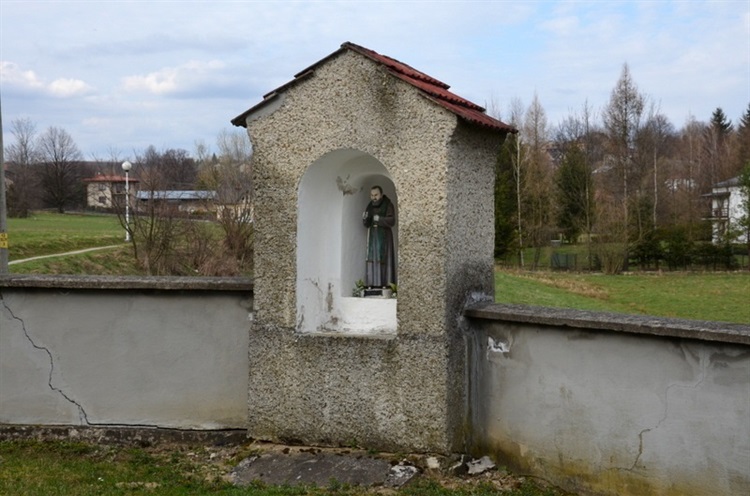 W murze otaczającym teren kościoła pw. św. Mikołaja wkomponowane są cztery jednakowe kapliczki. Kapliczki wzniesione są na planie prostokąta z wnękami w ścianie frontowej i nakryte dwuspadowymi daszkami. W każdej kapliczce umieszczona jest jedna figura: Matka Boska Niepokalanego Poczęcia, ojciec Pio, św. Józef i św. Antoni Padewski. Przed wejściem na teren kościoła, przy wieży stoi jeszcze jedna kapliczka.W przeszklonej wnęce stoi figura Pana Jezusa w wizerunku Najświętsze Serce Pana Jezusa.