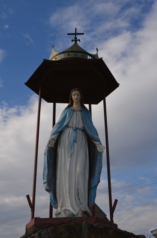 Kapliczka Matki Bożej znajduje się przed kościołem pw. Miłosierdzia Bożego. Figura wieńczy grotę murowaną z kamienia. Figurę Matki Bożej chroni daszek wsparty na czterech metalowych prętach. Na daszku umieszczona jest korona i krzyż.