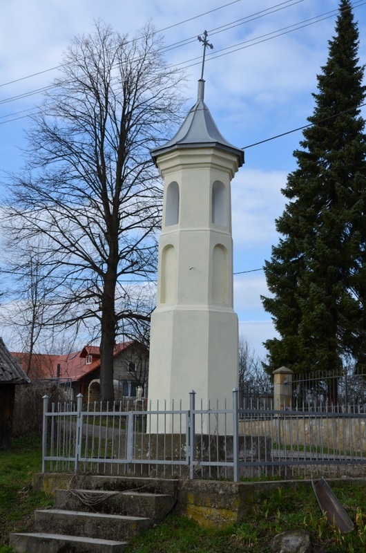 Kapliczka stoi w pobliżu kościoła pw. Matki Boskiej Pocieszenia i św. Marcina. Wzniesiona została prawdopodobnie w XIX lub na początku XX wieku. Jest to obiekt murowany na rzucie ośmioboku, trzykondygnacyjny i nakryty dachem zwieńczonym krzyżem. Najwyższa, o gładkich ścianach, jest pierwsza kondygnacja. Druga, niższa i węższa kondygnacja, w co drugiej ścianie posiada półokrągło zamknięte płyciny. Najwyższa kondygnacja wykonana w formie latarni zakończona jest kilkustopniowym gzymsem. Wewnątrz umieszczona jest figurka Matki Bożej.