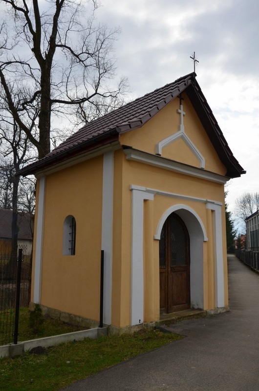 Kapliczka jest obiektem wzniesionym na planie prostokąta, jest murowana zdobiona pilastrami i gzymsem. Nakryta jest dwuspadowym dachem i krzyżem umieszczonym na kalenicy. W ścianach bocznych małe zamknięte łukiem okienka, a wnętrze zabezpieczone drewnianymi półokrągło zakończonymi przeszklonymi drzwiami.