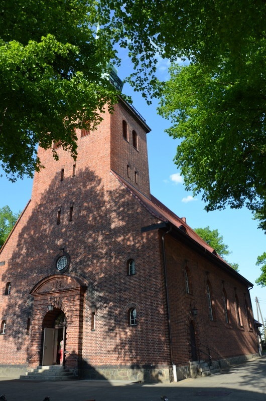 Kościół został zbudowany z czerwonej cegły, na planie prostokąta z niższym prezbiterium i więżą nad wejściem. Na wieży zawieszono dwa dzwony o imionach: św. Florian i św. Urban.