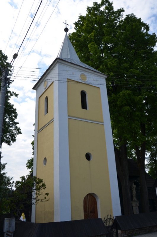 Murowana dzwonnica stoi po lewej stronie bramy wejściowej na teren drewnianego kościoła pw. Świętego Sebastiana i Matki Bożej Różańcowej. Dzwonnica zbudowana została w 1881 roku. Zbudowana jest na planie prostokąta, kilkukondygnacyjna i nakryta dachem namiotowym zwieńczonym krzyżem. Od frontu poniżej dachu widoczny rok budowy obiektu – A.D. 1881. W dzwonnicy znajdują się cztery dzwony. W roku 2003 dzwonnica została odnowiona.